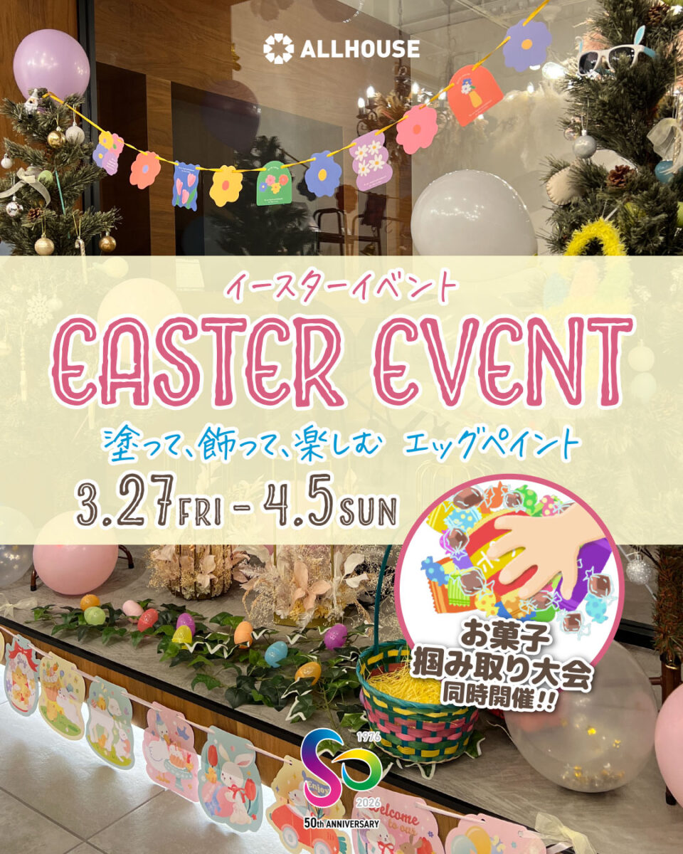 オールハウス店舗もイースターイベント仕様にかわいくコーディネートしたので、ぜひご家族皆様でご参加ください!