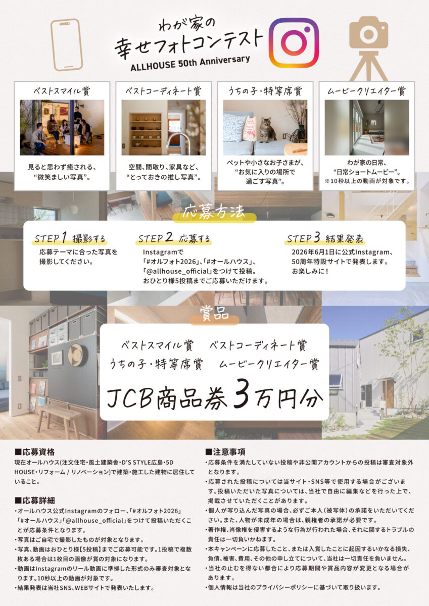 オールハウス公式Instagramと、当サイトにて当選発表させていただきます。