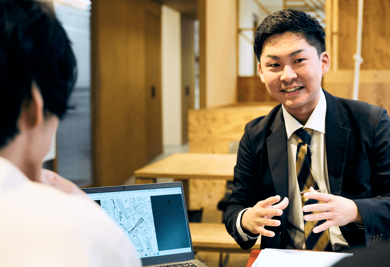 実際に足を運び、気になる土地や物件があればオーナー様へ買取のご提案を行います。飛び込みで訪問することもあれば、反響対応から打ち合わせに繋がることも。オーナー様と何度もコミュニケーションを重ね、ニーズに合わせて様々な選択肢をご提案します。